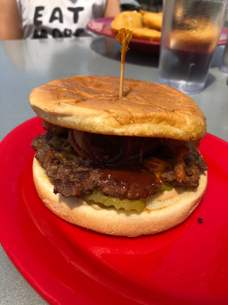 I live near Smitty’s Garage, so whenever my family and I are looking to sit down and eat some burgers, we almost always turn to Smitty’s. This restaurant specializes in burgers and offers a numerous amount of different options. You can decide anywhere from the Sweet New Mexico burger topped with green Chile’s, cream cheese, and honey, or you could go the safe route with the classic American cheeseburger. During my last trip to The Garage, I decided to try out the BBQ Bacon Theta burger, which is topped with BBQ aioli, pickles, BBQ sauce, bacon, and cheddar cheese, along with a side of sweet potato fries. Unlike some sit down restaurants, Smitty’s always gets your burger out without a long wait. When my burger arrived, the first things I noticed was that they cooked the bacon the right way, which is not in the microwave, and they put the perfect amount of sauce on it to where the bun wasn’t soggy or dripping everywhere. Although the burger was slightly greasy, it still tasted great, as it always does when I make a trip to The Garage. Smitty’s Garage is the classic place to gather and eat burgers with a group of friends or to watch a game in a sports-bar like atmosphere.